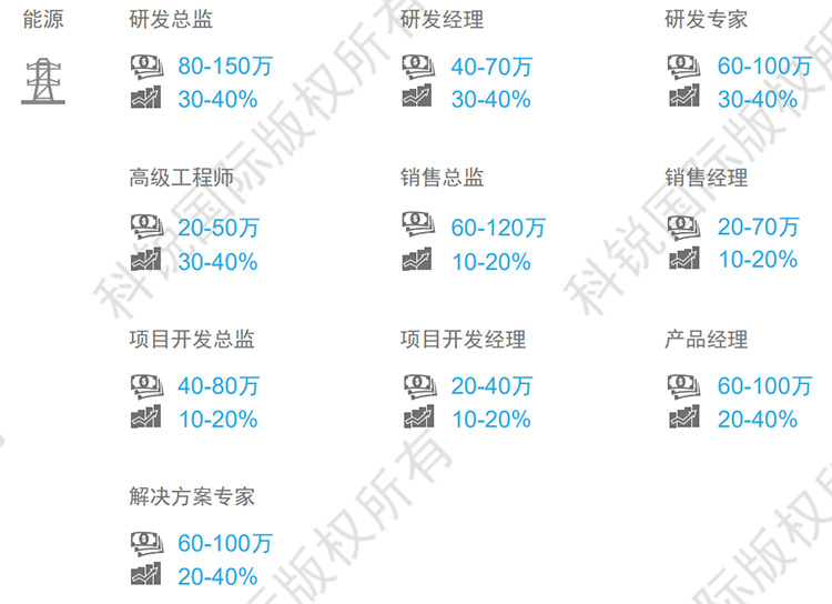 薪酬趋势:行业整体薪酬趋稳,自然涨幅在8-12%,跳槽涨幅在20-30%。能源互联网领域资深人才紧缺,部分职位薪资涨幅可达50%,甚至更高(文中部分数据是猎头公司维多利亚老品牌VIC国际专家顾问的分析预测,供企业和猎头招聘参考)