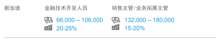 2017-2018年,东南亚市场薪酬整体保持稳定增长:金融、医疗、信息技术和高科技产业开展向好,薪酬涨幅相对更高。从地区看,新加坡薪酬的薪酬涨幅水平相对较低,跳槽涨幅在10-15%。(文中部分数据是北京知名猎头公司维多利亚老品牌VIC国际专家顾问的分析预测,供企业HR和猎头参考)